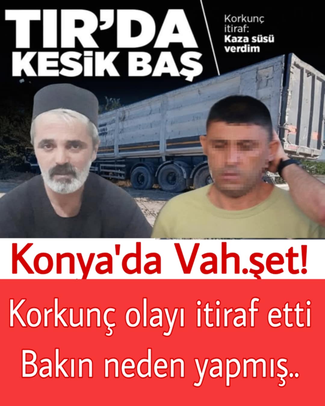 Konya'da yanan tır ihbarına giden ekipler, sürücünün öldürülüp başının kesildiğini fark etti. Katil zanlısı Ş.T. ilk ifadesinde suçunu itiraf ederken savunması şoke etti.